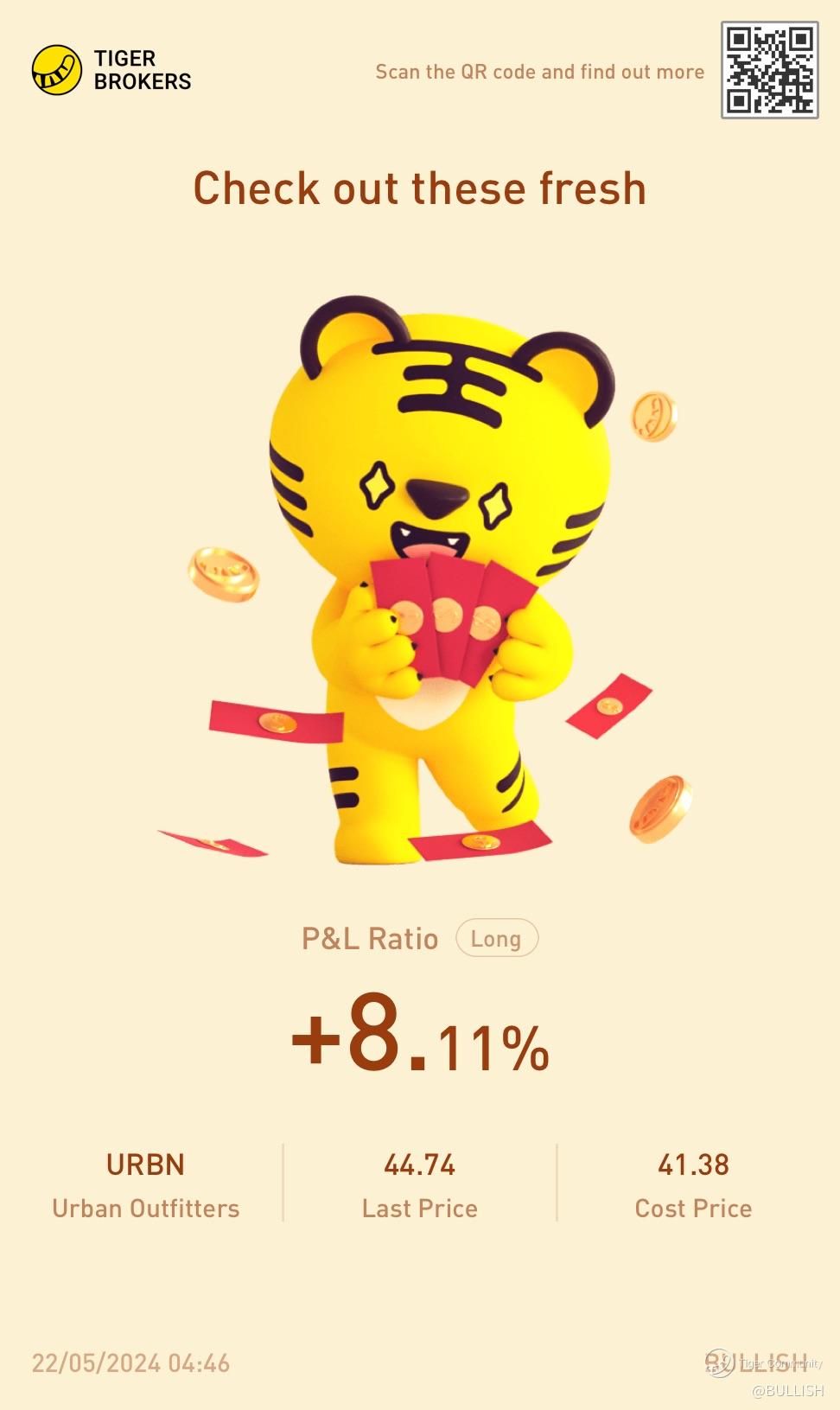 $Urban Outfitters(URBN)$ Continuing from my earlier MARA post. Sold my MARA holdings to buy into URBN here. Quick 8% win. Let's see what the earnings call does for this.