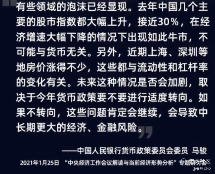 書歸正傳,再說下國內市場,我昨天在文章猜測下跌可能是由市場對政策收緊的擔憂引起的,我今天查了下,確實有這種發言,段位還不低,曾經宣佈中國2020年GDP不設置目標的馬駿說的: