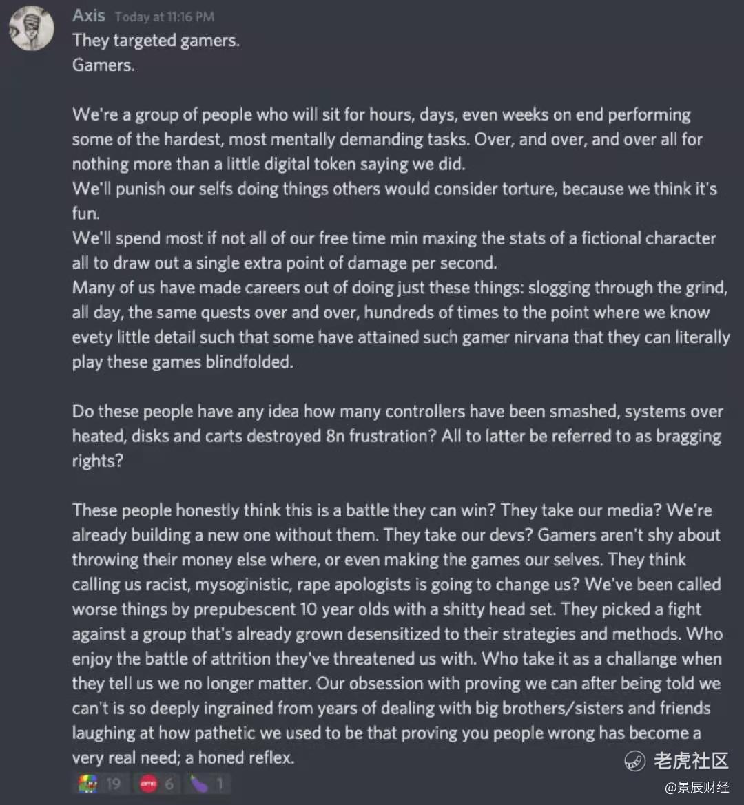 大佬此次站出來表態,純粹是站在道義上發聲。