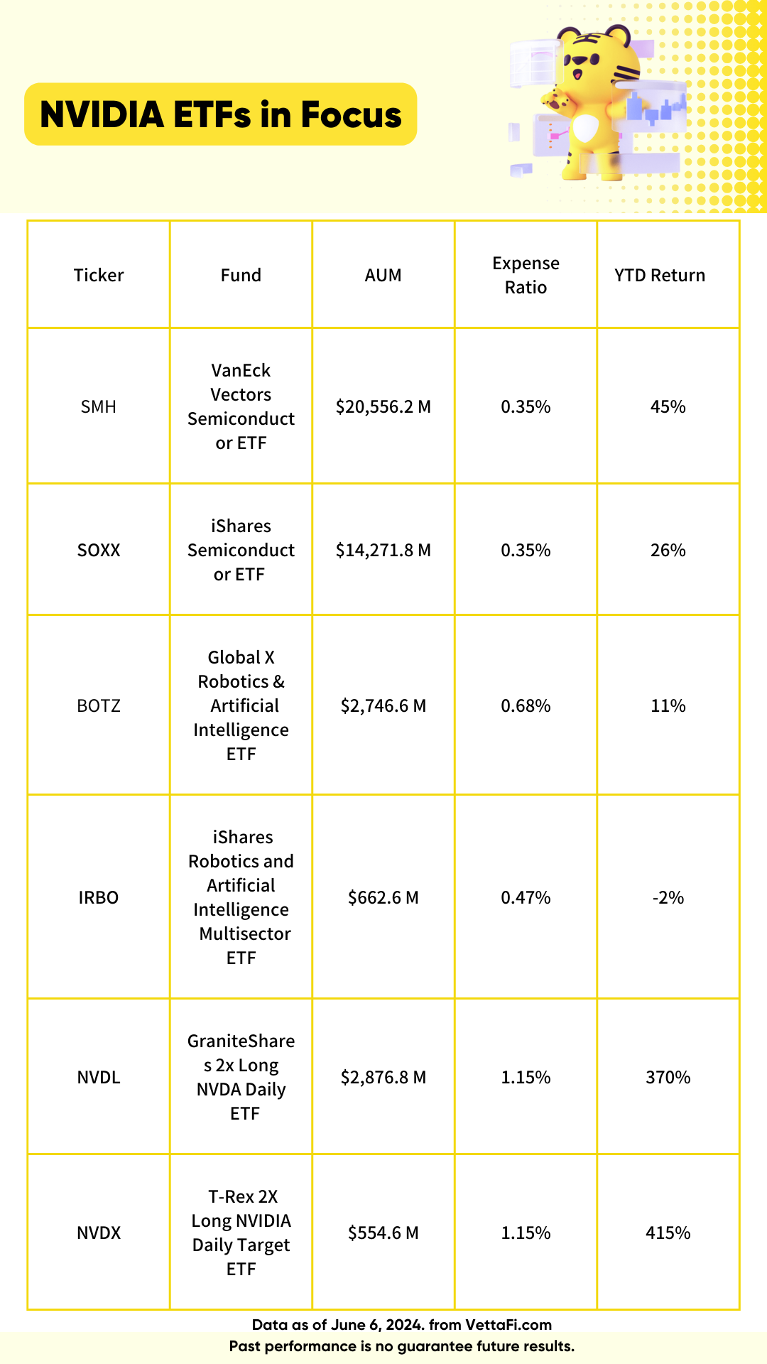 But if you're a cautious investor or haven't invested much in the semiconductor sector, it might be better to diversify rather than bet on a single company. ETFs can help you do that, allowing you to gain exposure to all top companies and benefit from their current and future growth.