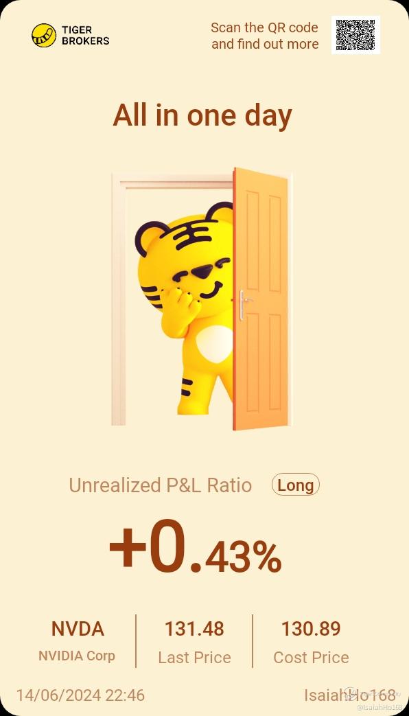 $NVIDIA Corp(NVDA)$ This is one remarkable stock which has never failed me ever since l started trading. On second thoughts, l could have given up if not for NVIDIA which makes my trading path seems easier & more enjoyable. Kudos to NVIDIA & the founder Jensen Huang.