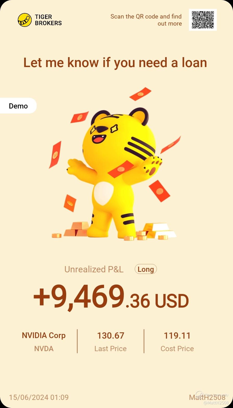 $NVIDIA Corp(NVDA)$ well, I did say to keep an eye on this stock, said it was going to soar like an eagle, hope you all hot a good earn from Nvidia as she has a lot more to offer