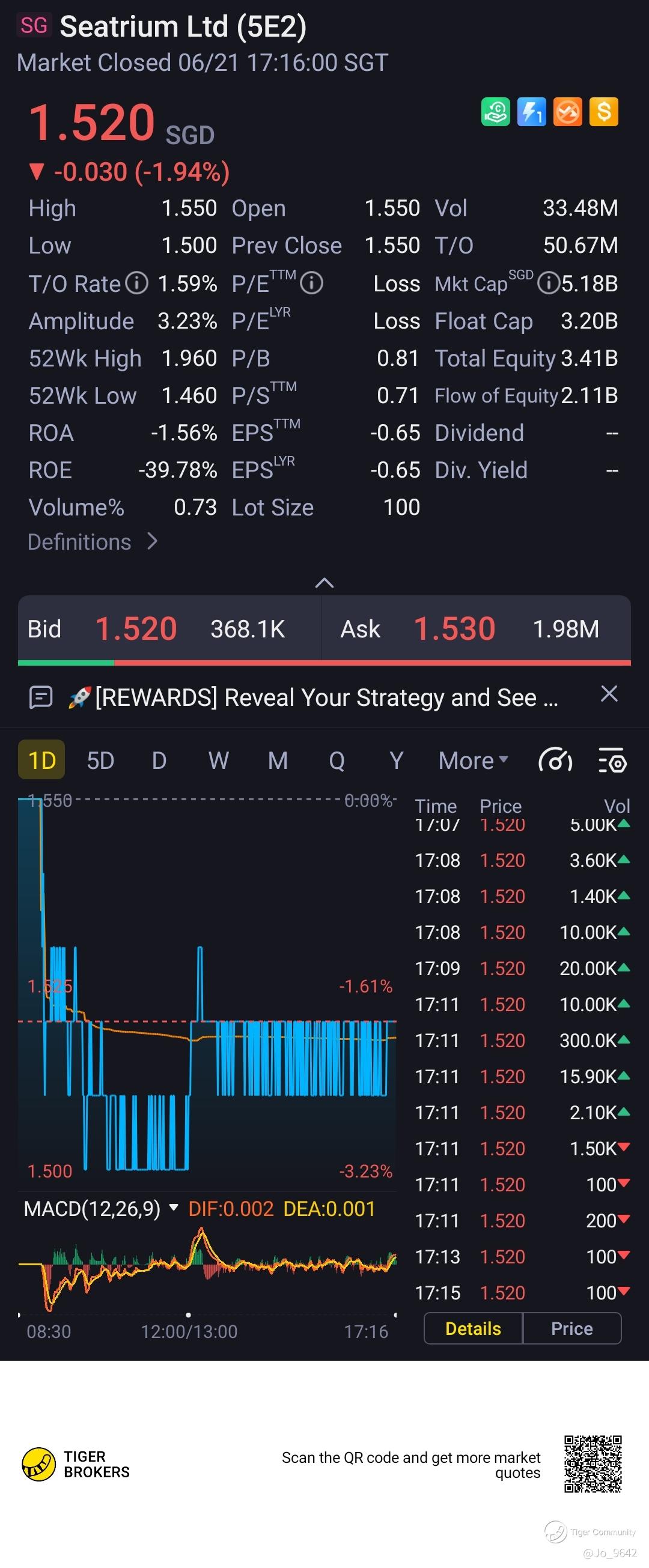 - Jamesang·2024-07-21TOP$Seatrium Ltd(5E2.SI)$ I bought $32,000 Seatrium shares at $1.46. I have another $40,000 to DCA at $1. If seatrium falls to 50 cents I will use my $1.2 million cash in bank to buy $1.2 million of seatriumLikeReport