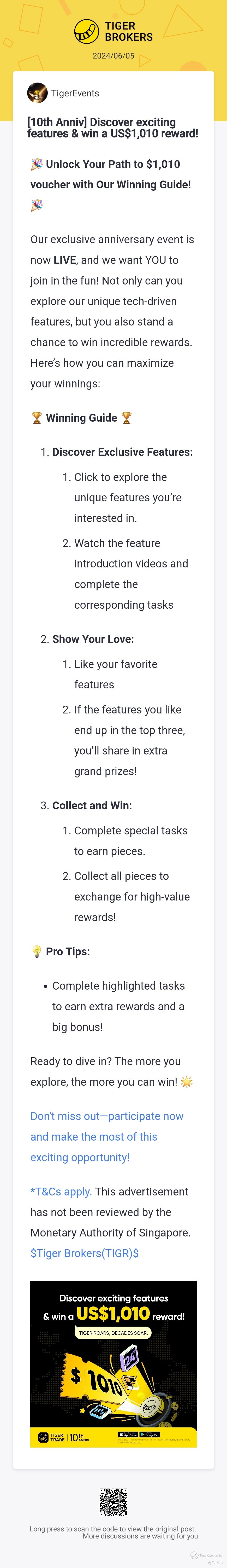 Join the series of celebration as Tiger celebrates it 10th Anniversary! Waiting for $Tiger Brokers(TIGR)$ to rise again! #10thanniversary #TIGR