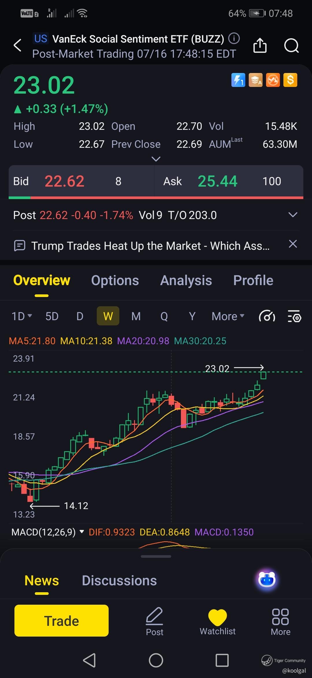 πππI love good news in the markets! $VanEck Social Sentiment ETF(BUZZ)$ is an ETF that has a laser focus that is specially created to track the performance of 75 large Cap US stocks which exhibit the highest degree of positive investor sentiment and bullish perception. BUZZ does this by content aggregated from online sources including social media, news articles, blog posts and other alternative datasets.