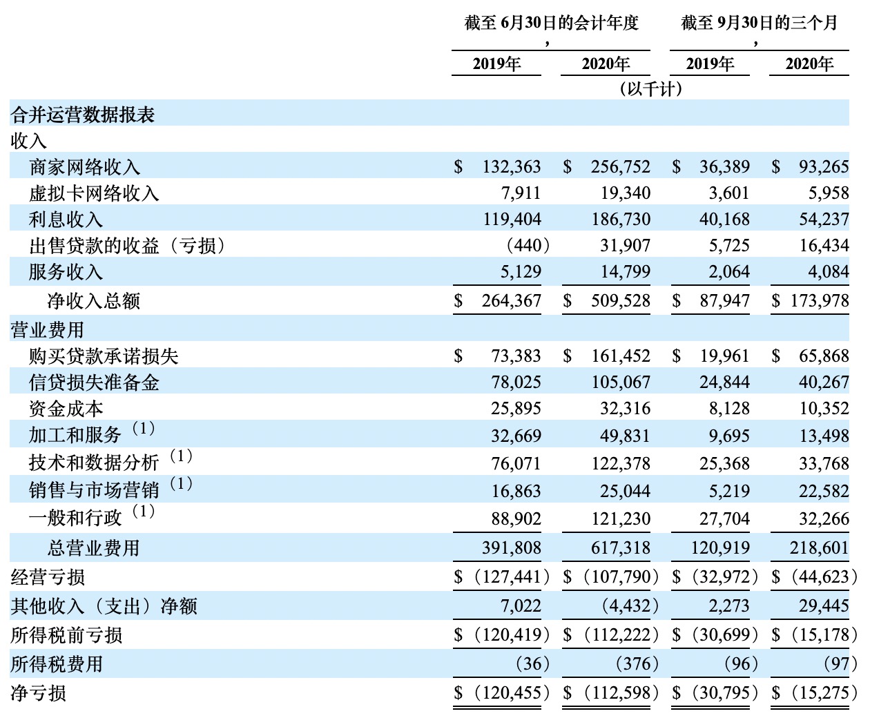 Affirm在截至6月30日的財政年度中實現了約5.1億美元的收入,比去年增長了93%。上一季度營收翻倍,淨虧損減少了一半。收入模式: