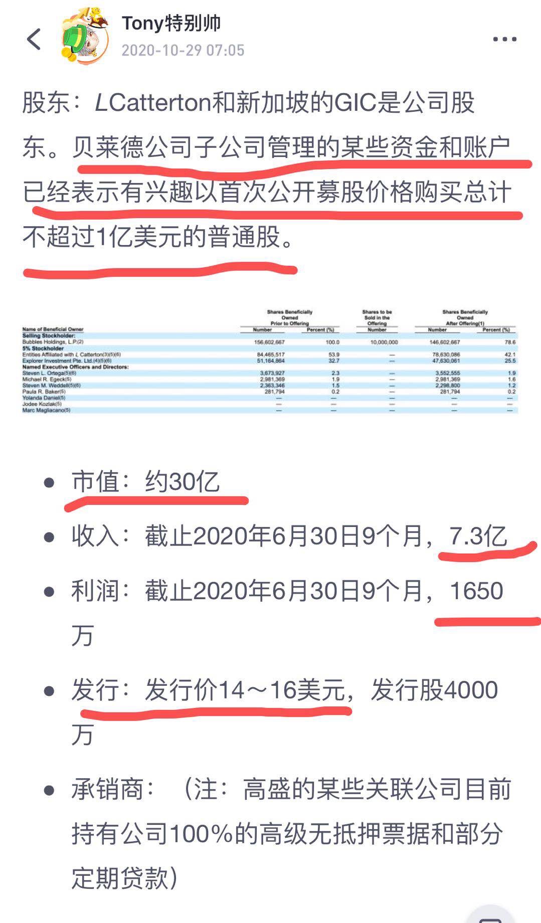 當然我考慮了一下,這公司股價催化因素就是和平臺簽約。一家$Peloton Interactive, Inc.(PTON)$就帶着公司估值翻了3倍,再來一家豈不是要飛起?贏面概率大,賭一個上市後的利好消息。(注:當見到概率這種用詞時應考慮理想分配持倉)