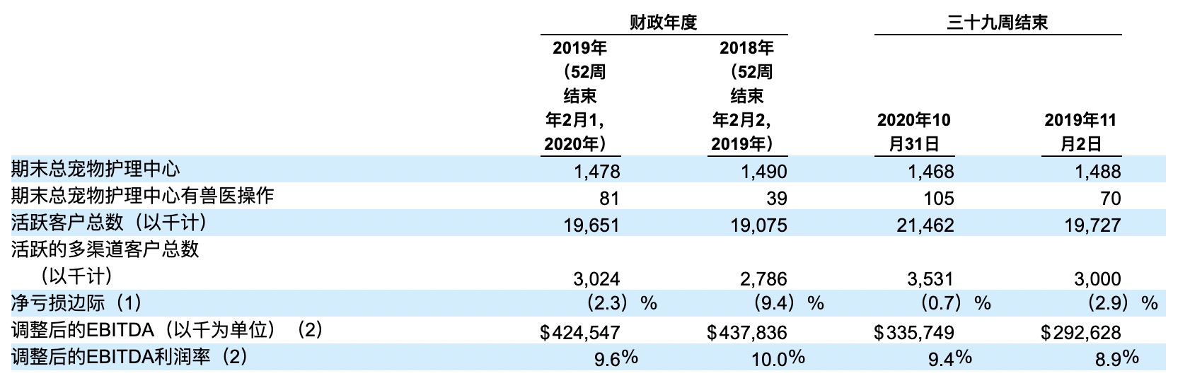 按理來說電子商務活躍應該單獨分類,畢竟電商增長遠非線下能比。然而WOOF公司的電商和你們想的電商不一樣,他的電商主要配送方法是網上下單然後店內取貨,路邊交貨和店內發貨,依然是向線下倒流思維。所以在線銷售額從2019財年前三個季度的總銷售額的7%增長到2020財年同期的13%,增長緩慢,並且電子商務銷售的利潤率通常低於店內銷售。從指標來看WOOF是非常典型的線下店鋪。截止2020年10月31日約9個月,公司可比銷售額同比增長9.6%;調整後EBITDA從2.926億美元增長至3.357億美元,同比增長14.7%;活躍客戶總數2100萬,增長8%;活躍多渠道客戶總數增長17%。