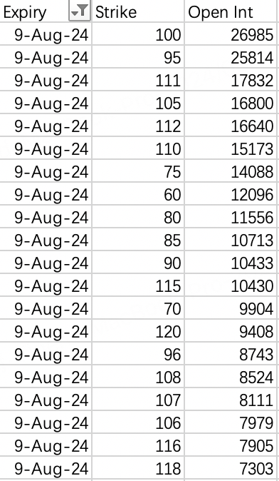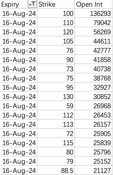 Looking at the put open interest rankings for Aug 9th and 16th expirations, the put strike skipping is quite erratic - theoretically not forming any continuous strike threats for a squeeze.