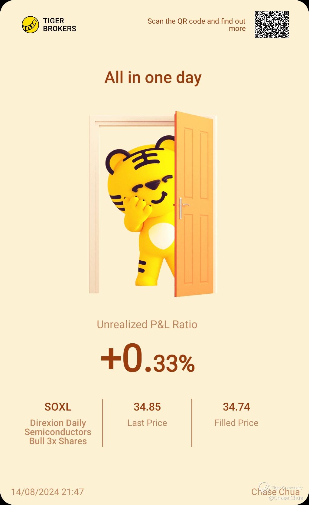 $Direxion Daily Semiconductors Bull 3x Shares(SOXL)$ wait and rise to 37 ! Goodnight