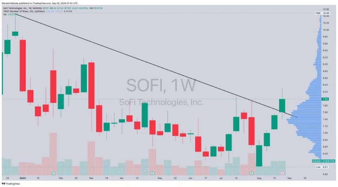 $SoFi Technologies Inc.(SOFI)$ Got a nice breakout and push on SOFI last week, hit $8.30 on the run-up.. solid breakout and hold, let's see if this stock can finally build some momentum to the upside for a change.