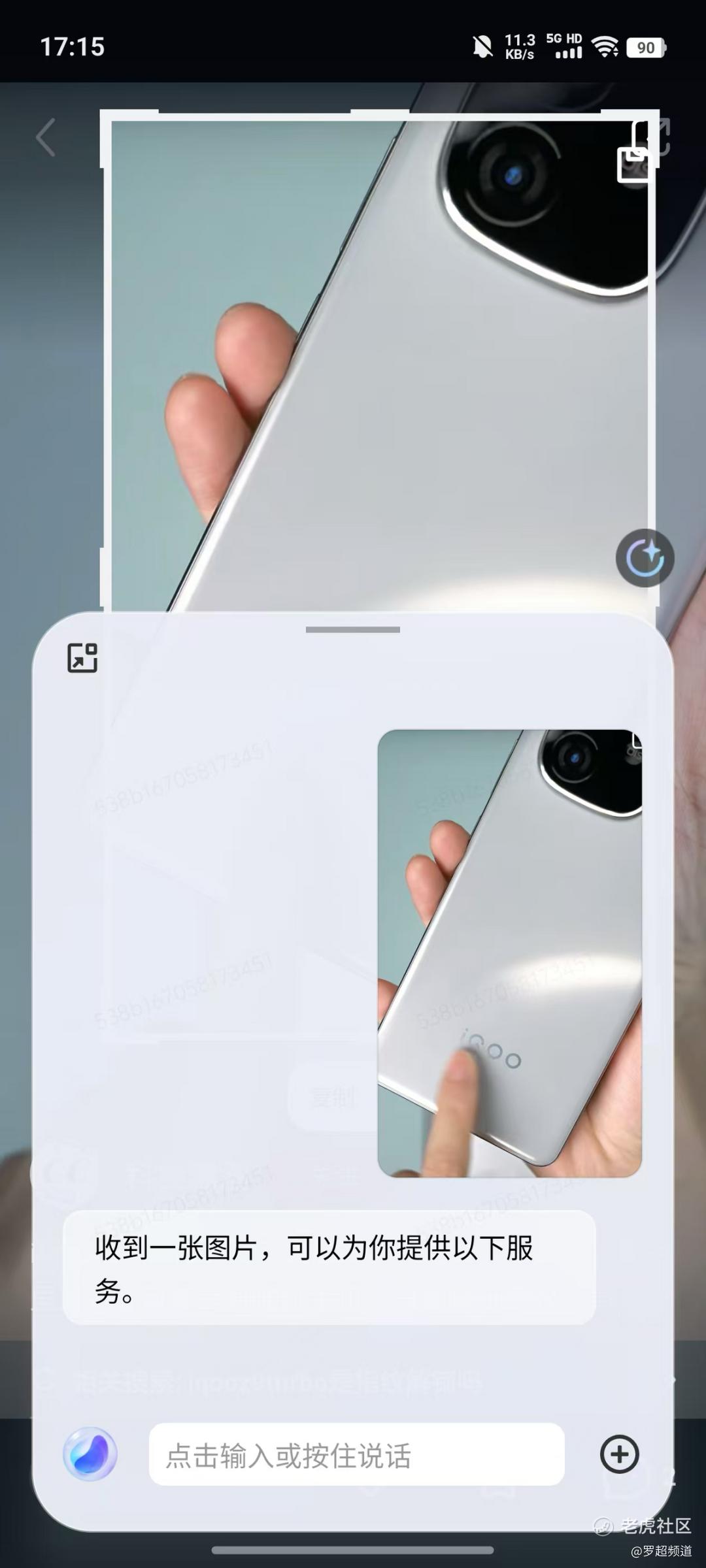 在使用vivo手機時,不論我處在什麼頁面,都可以長按導航欄或者電源鍵喚出藍心小V。除了可與其對話讓其完成各種任務外,小V圈搜還能可直接識別當前頁面被選中的文字、圖片,或者畫面中的某個物品。