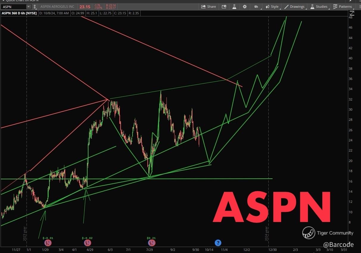 In terms of recent stock performance, Aspen Aerogels has experienced a 277% year-over-year increase in the Thermal Barrier revenue segment. The stock price as of October 16, 2024, is $24.685, with a support price of $22.38 and a resistance price of $22.48. The average cost is $25.03.