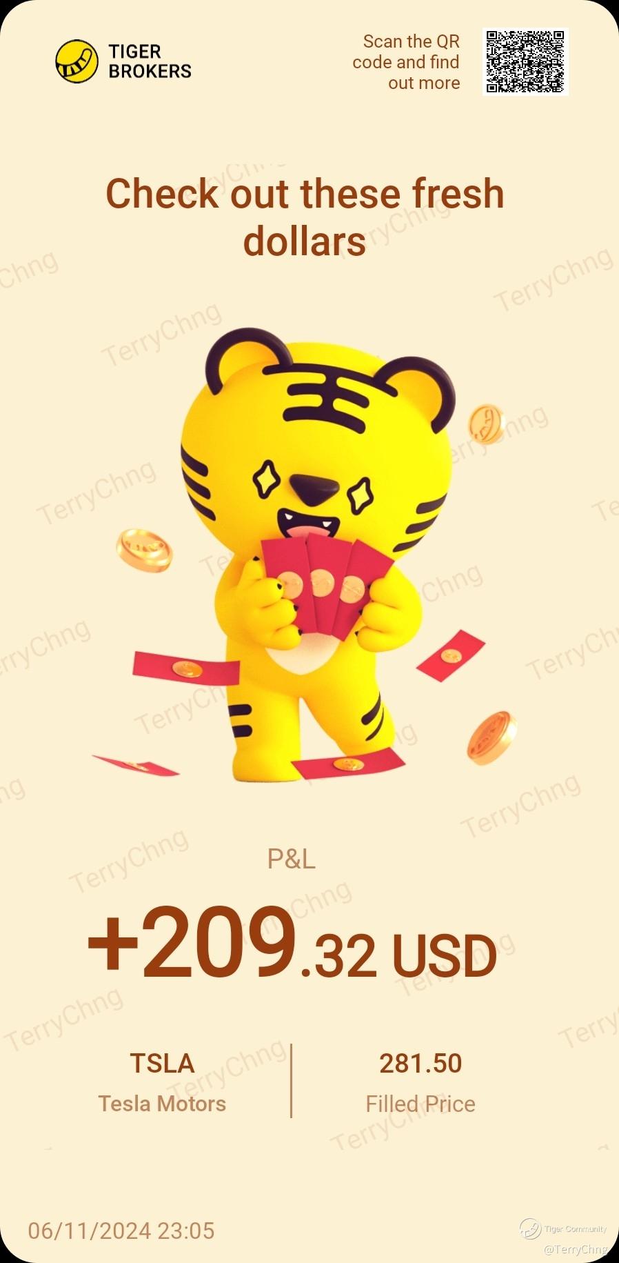 $Tesla Motors(TSLA)$ take profit and good night