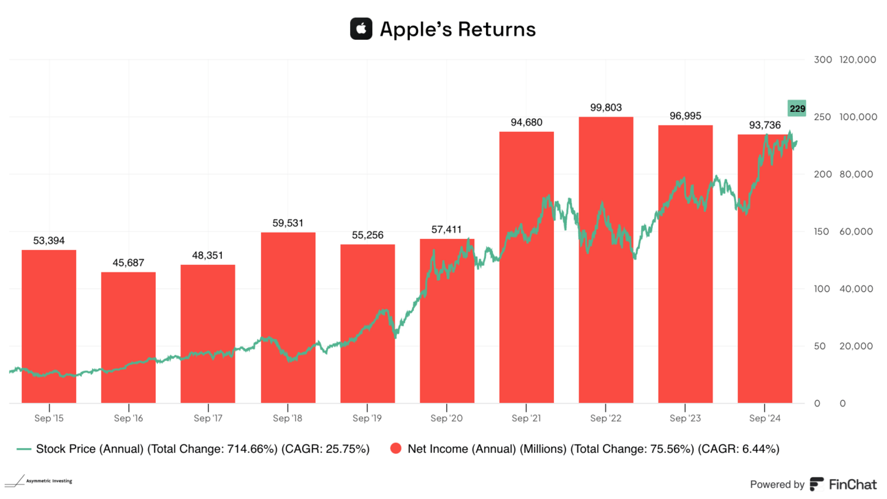 If the P/E multiple then expands, as it did with Apple, shares can skyrocket higher, as evidenced by Apple’s 715% return despite just a 76% increase in earnings.
