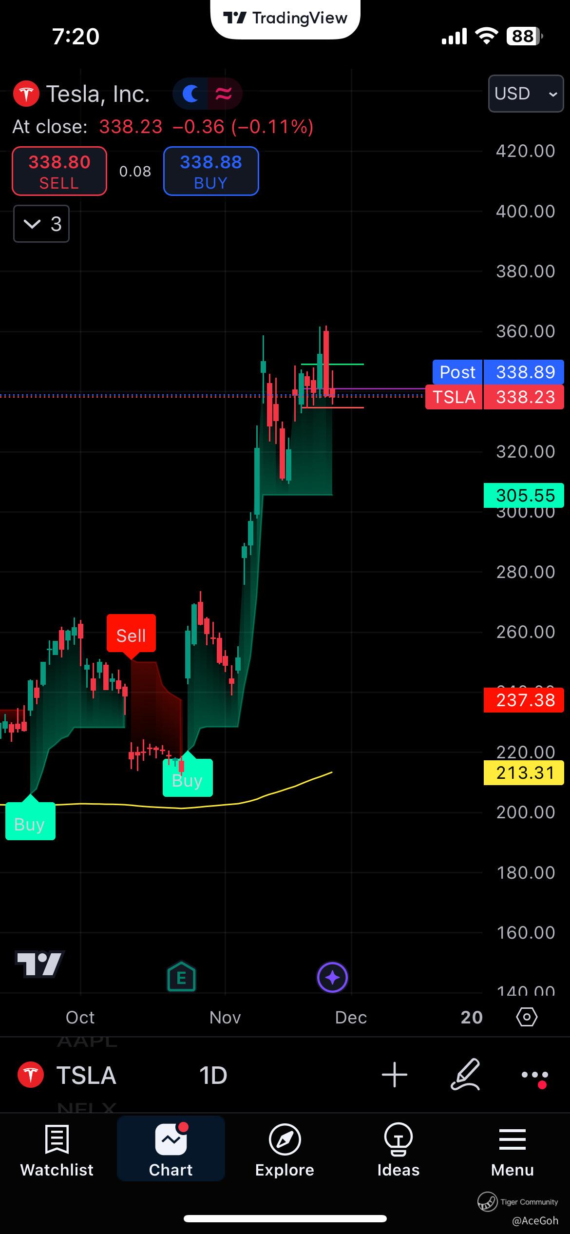 $Tesla Motors(TSLA)$  was a good run up. Taking some money off the table may be a good idea to put into higher probability trades.