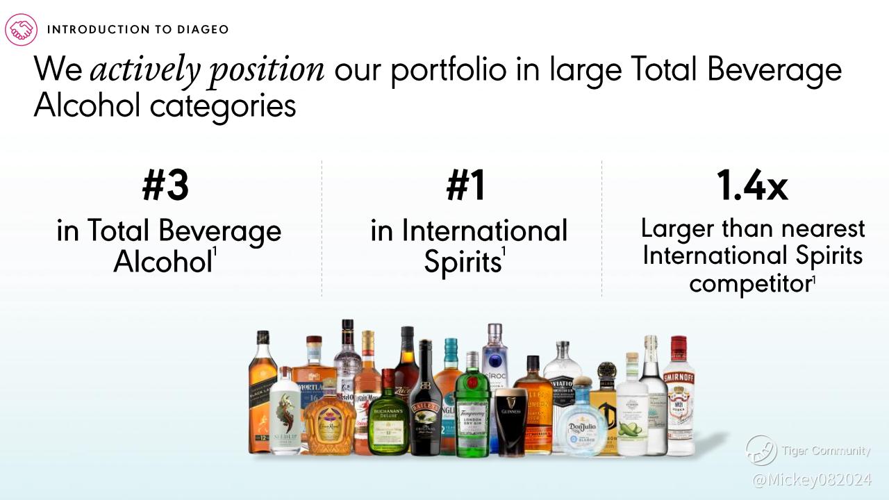 $Diageo PLC(DEO)$ Diageo, the world's leading producer of premium alcoholic beverages, boasts a portfolio of iconic brands such as Guinness, Johnnie Walker, Smirnoff, Tanqueray, and Baileys.