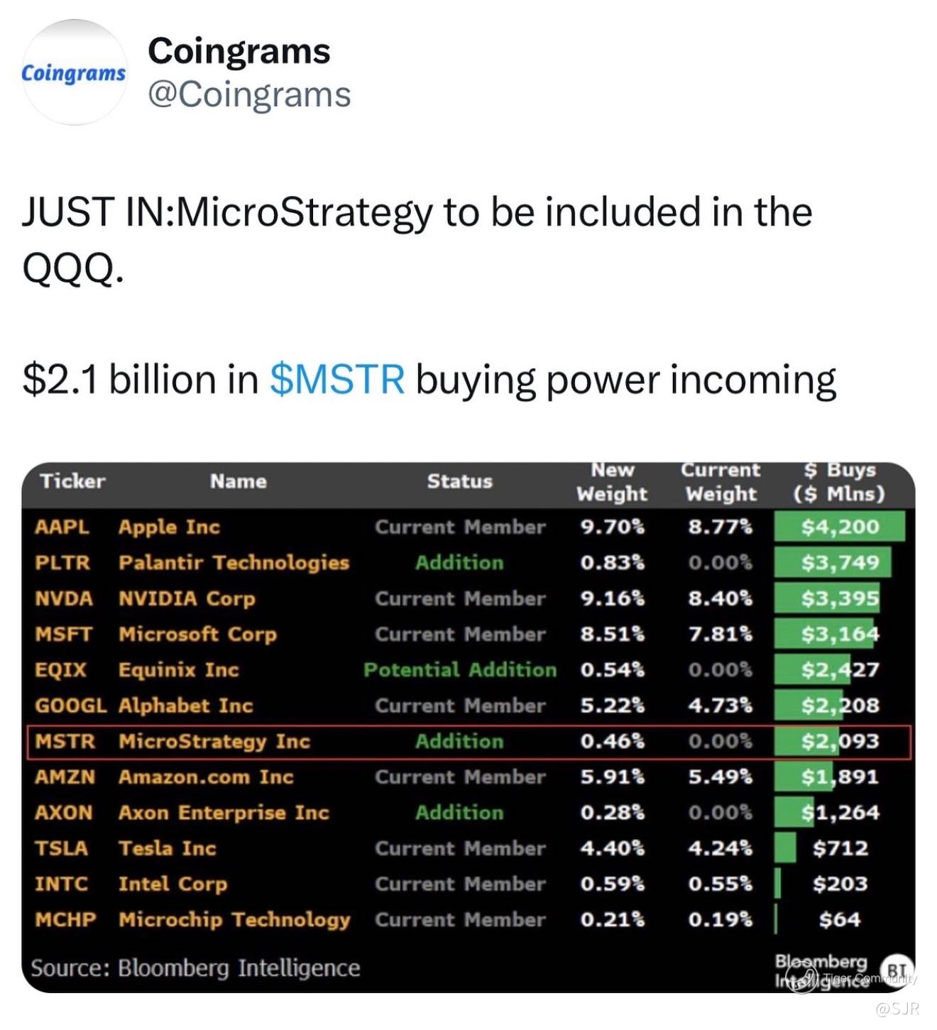 MicroStrategy to be included in the QQQ from 23 December!