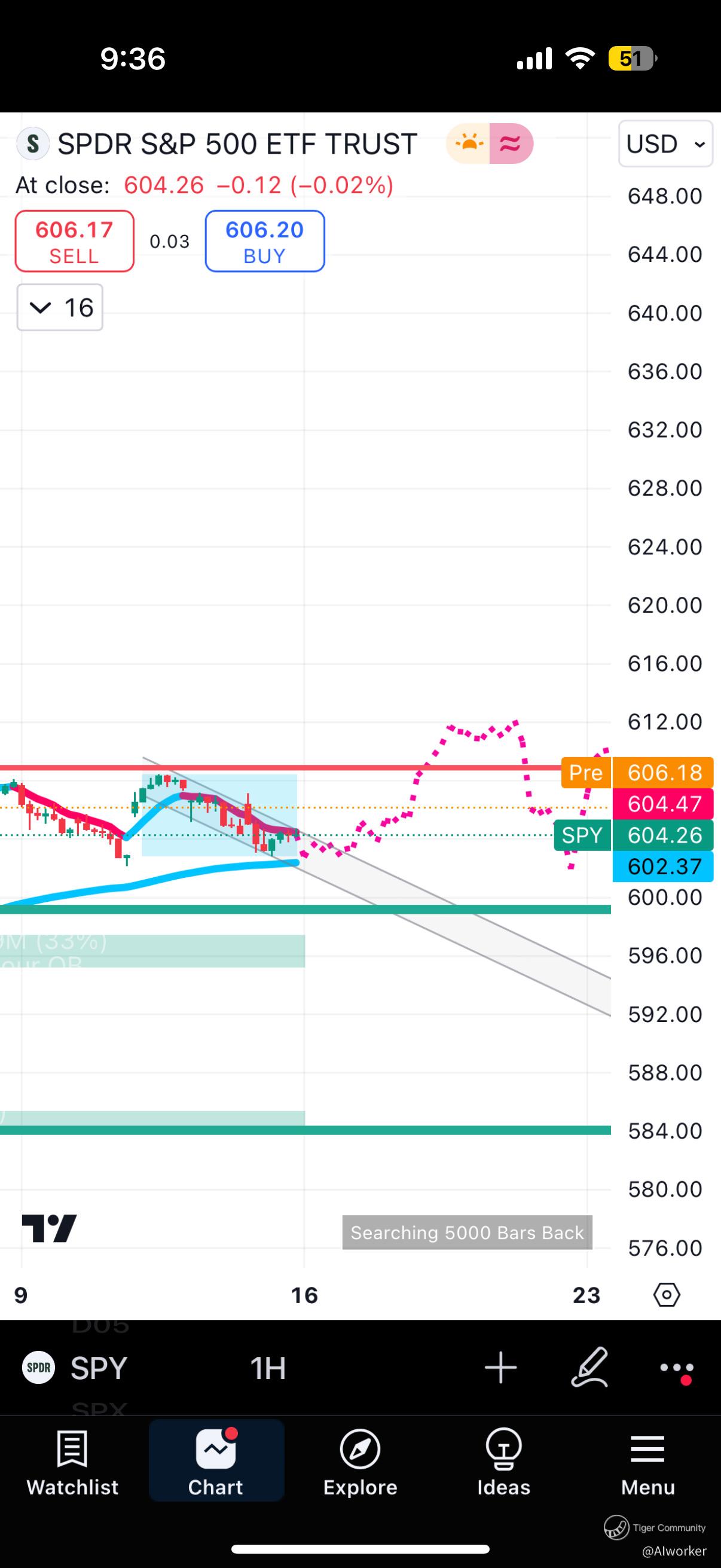 The dotted pink line seems to be headed in same direction of premarket. Tool from https://aiworker.sg
