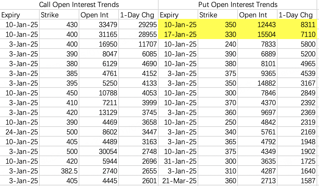 Currently, Tesla is still suitable for various bearish strategies. For long positions, wait for large long call orders to enter, possibly at the 330 level or after earnings.
