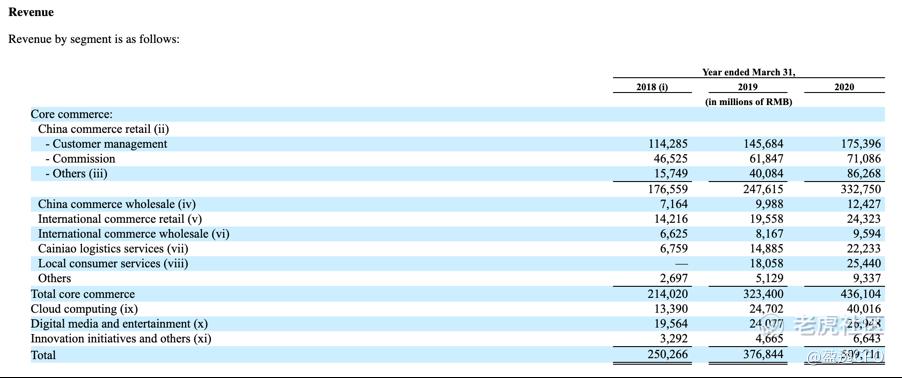 上圖是阿里巴巴2018-2020年截止3月31日每個財年的收入,可以看出,雖然在2018年雲計算只佔總收入的5.35%,但2019年同比增長84.5%,2020年同比增長62%,佔2020年總收入的7.8%。