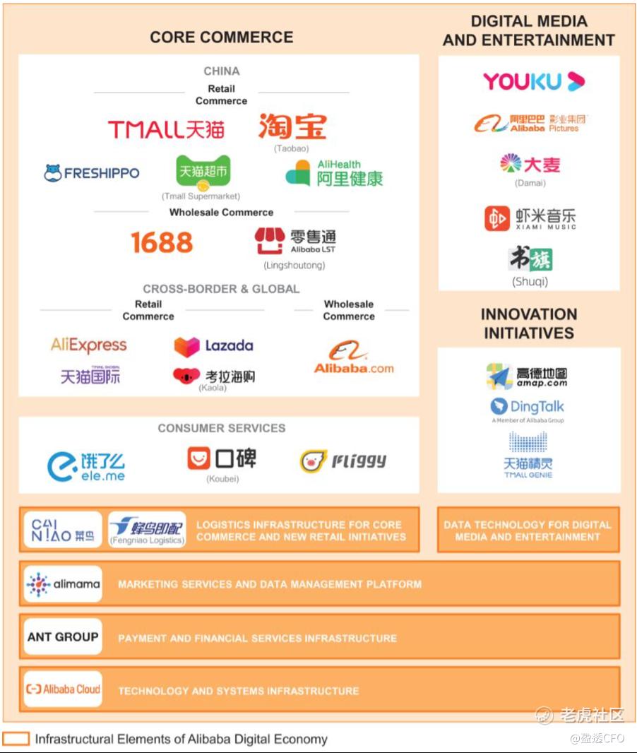 很多朋友對阿里巴巴的瞭解也僅限於淘寶,阿里=淘寶,淘寶=阿里,這是肯定不對滴。對於一個巨頭來講,打造生態,兼顧多個賽道是當今的主旋律。阿里巴巴主要的業務有: