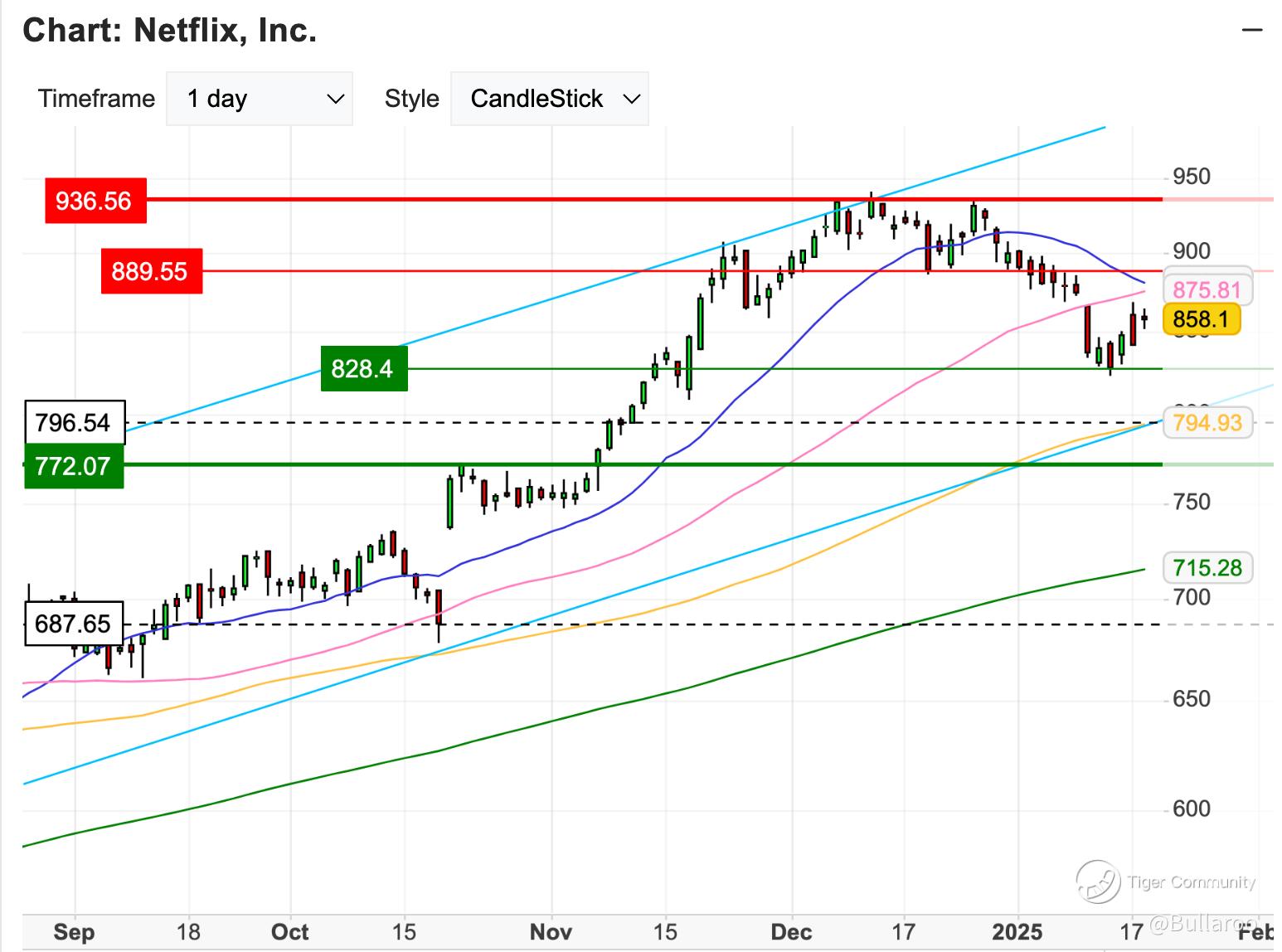 If the momentum continues, especially with positive guidance or news about subscriber growth or new revenue streams like ads, the stock could challenge the $1010 mark, which some analysts and traders have identified as an upper resistance or potential target.