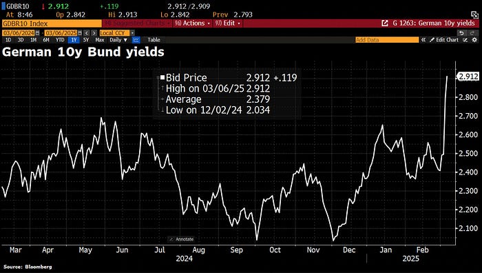 German 10-year bund yields, as of March 6th, 2025. Source: Holger Zschaepitz