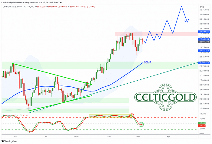 Gold in US-Dollar, daily chart as of March 6th, 2025. Source: Tradingview