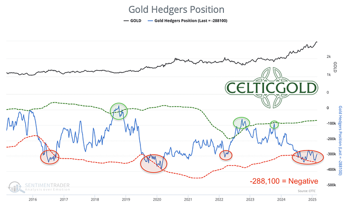 Commitments of Traders (COT) for gold as of February 25th, 2025. Source: Sentimentrader