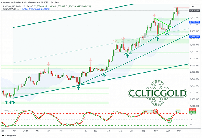 Gold in US-Dollar, weekly chart as of March 6th, 2025. Source: Tradingview