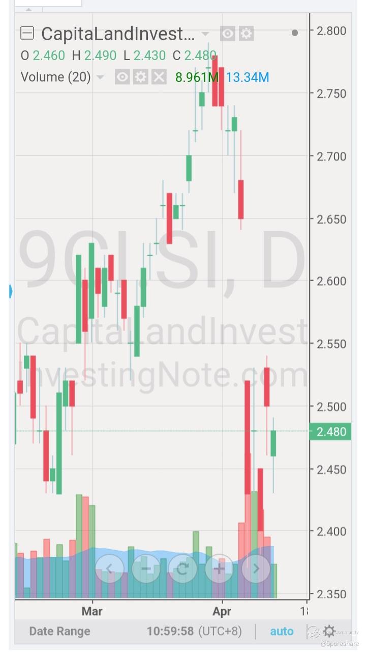 CapLand Investment - All the gains evaporated after the nice running up 2 weeks ago, now we need to wait for her to rise up to cover the Gapped at 2.65.