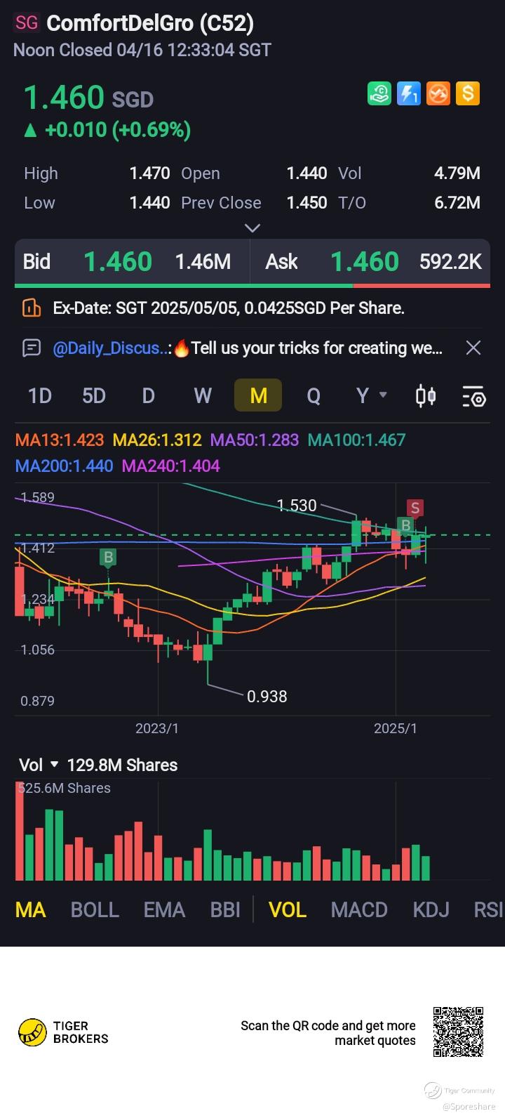 ComfortDelGro - Indeed, she had managed to rise up to reclaim 1.45 and closed higher at 1.46, looks like Bull is in control.