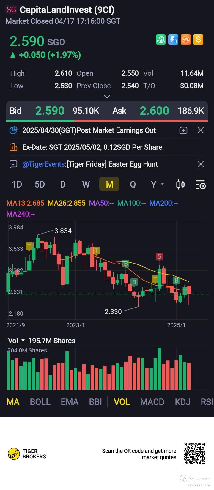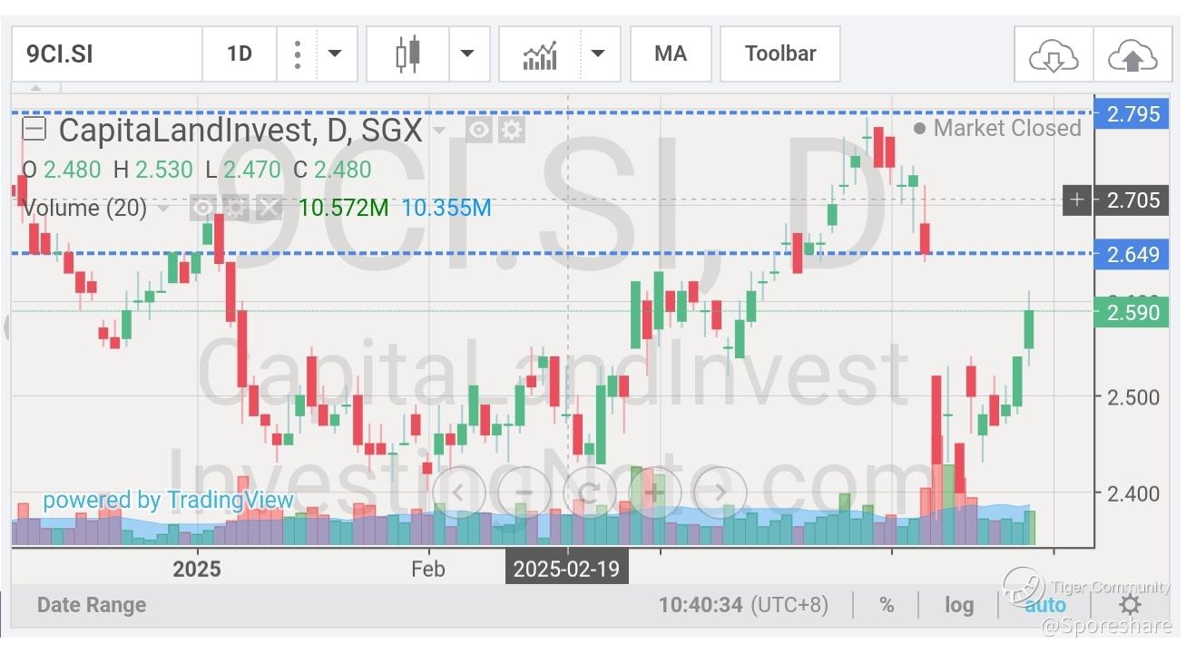 CapLand Investment (9CI.SI) - total dividend of about 18.6 cents including special dividend species of 0.031 CICT share, XD 2nd May. Paydate 13 May 2025. Fantastic!