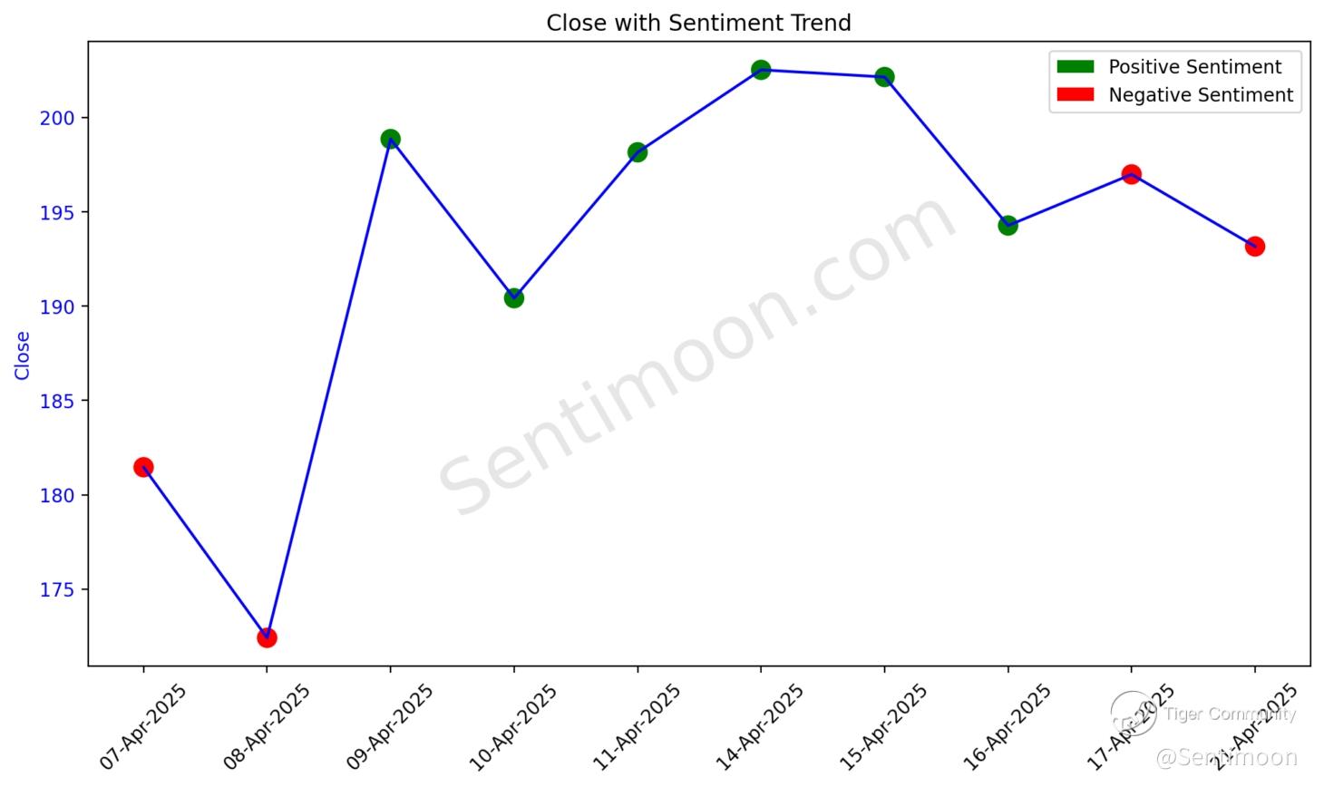 Looking ahead, if the price falls below 194.13, sentiment is likely to weaken further, potentially driving additional declines. Conversely, a rise above 204.19 could bolster sentiment, supporting upward momentum. Currently, the recent dip in both price and sentiment hints at near-term bearish pressure, but a rebound above the key resistance level may shift the trend positively. Monitoring these thresholds will be crucial for future direction.