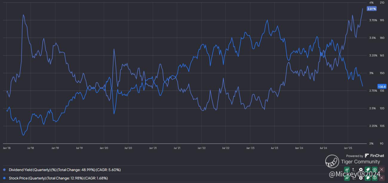 I believe there is 30–50% upside potential within 1–2 years, similar to what happened with Nestlé during its own period of sluggish growth and later recovery. Especially if the economy weakens or we enter a mild recession, defensive names like Pepsi tend to outperform.