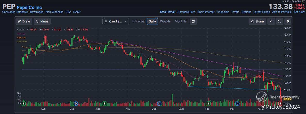 1. Tariff Uncertainty Ongoing tariff negotiations have created an uncertain environment. Once the situation stabilizes and tariffs are finalized, Pepsi's outlook should become clearer. This looks like a one-time event, not a permanent headwind.