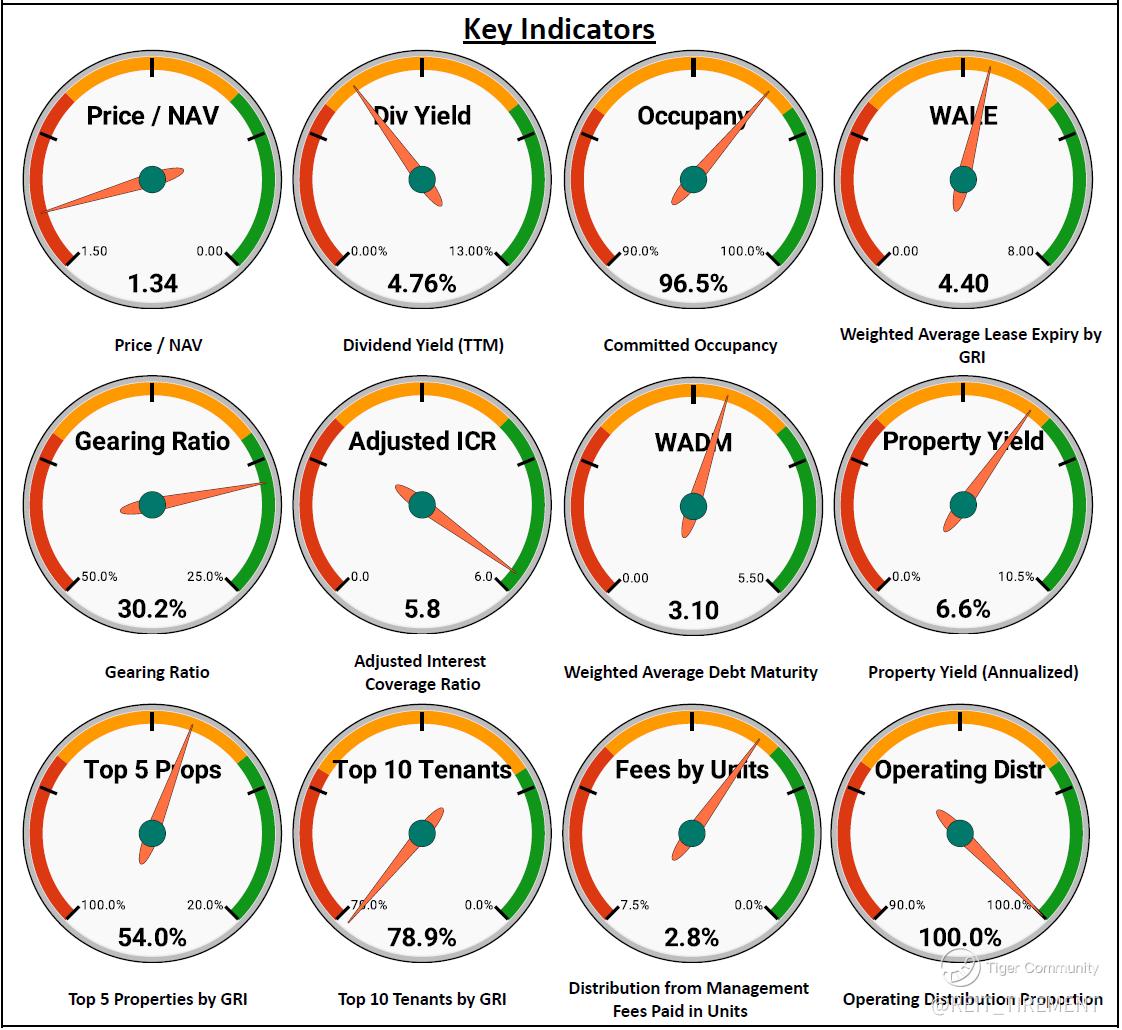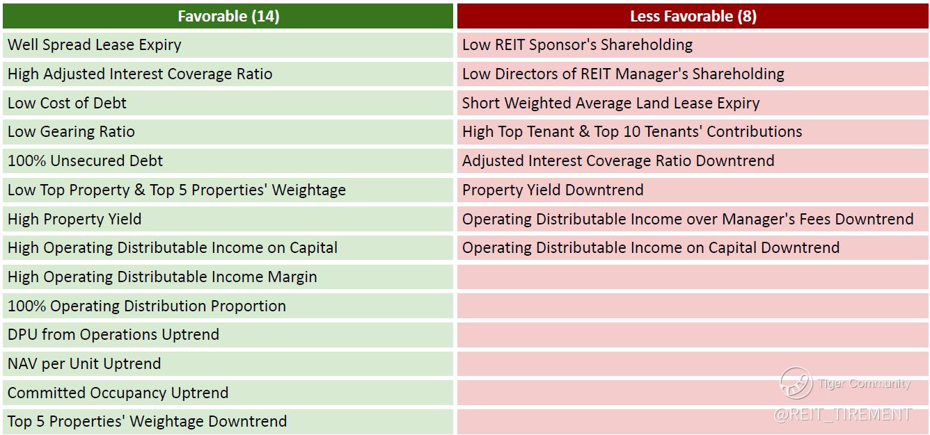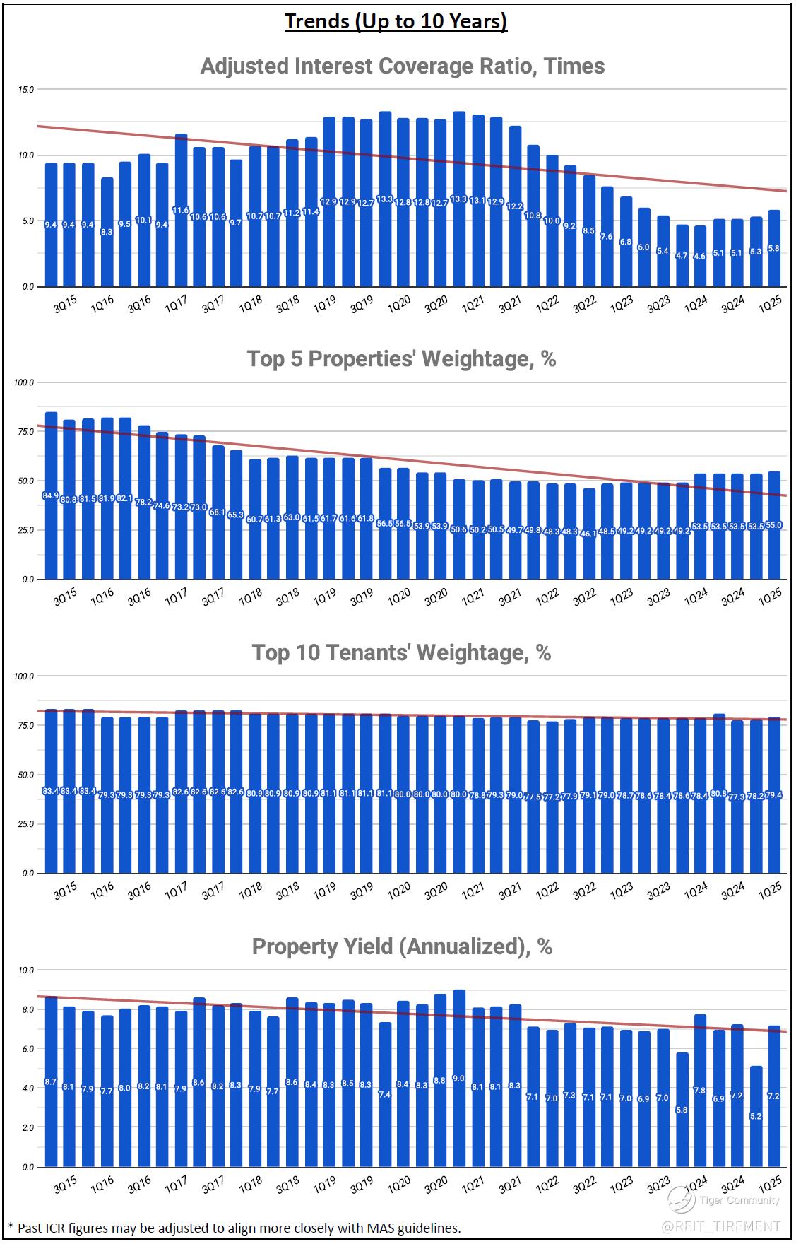 Downtrend: Adjusted Interest Coverage Ratio, Top 5 Properties' Weightage, Property Yield, Operating Distributable Income over Manager's Fees, Operating Distributable Income on Capital
