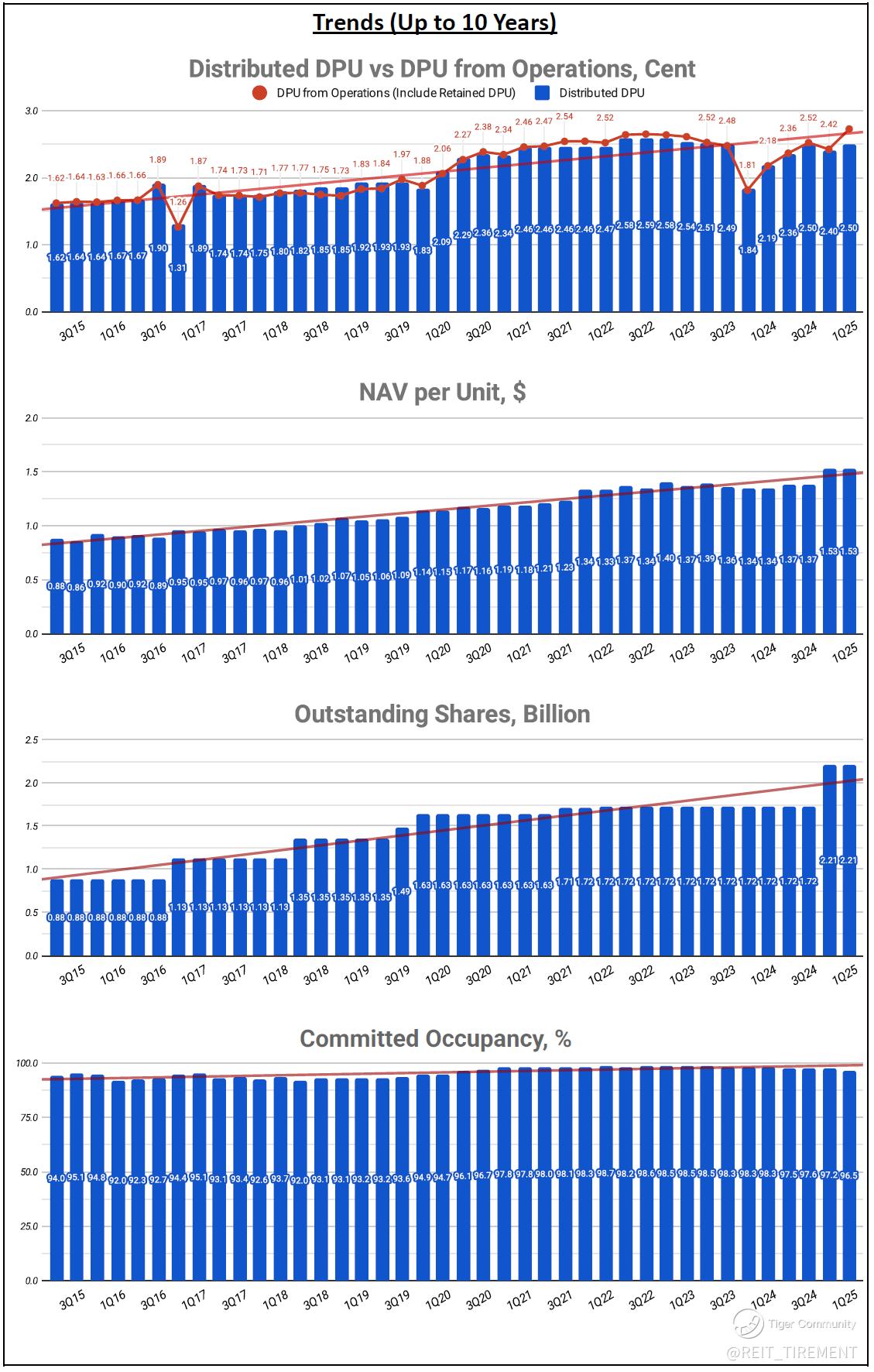 Uptrend: DPU from Operations, NAV per Unit, Committed Occupancy