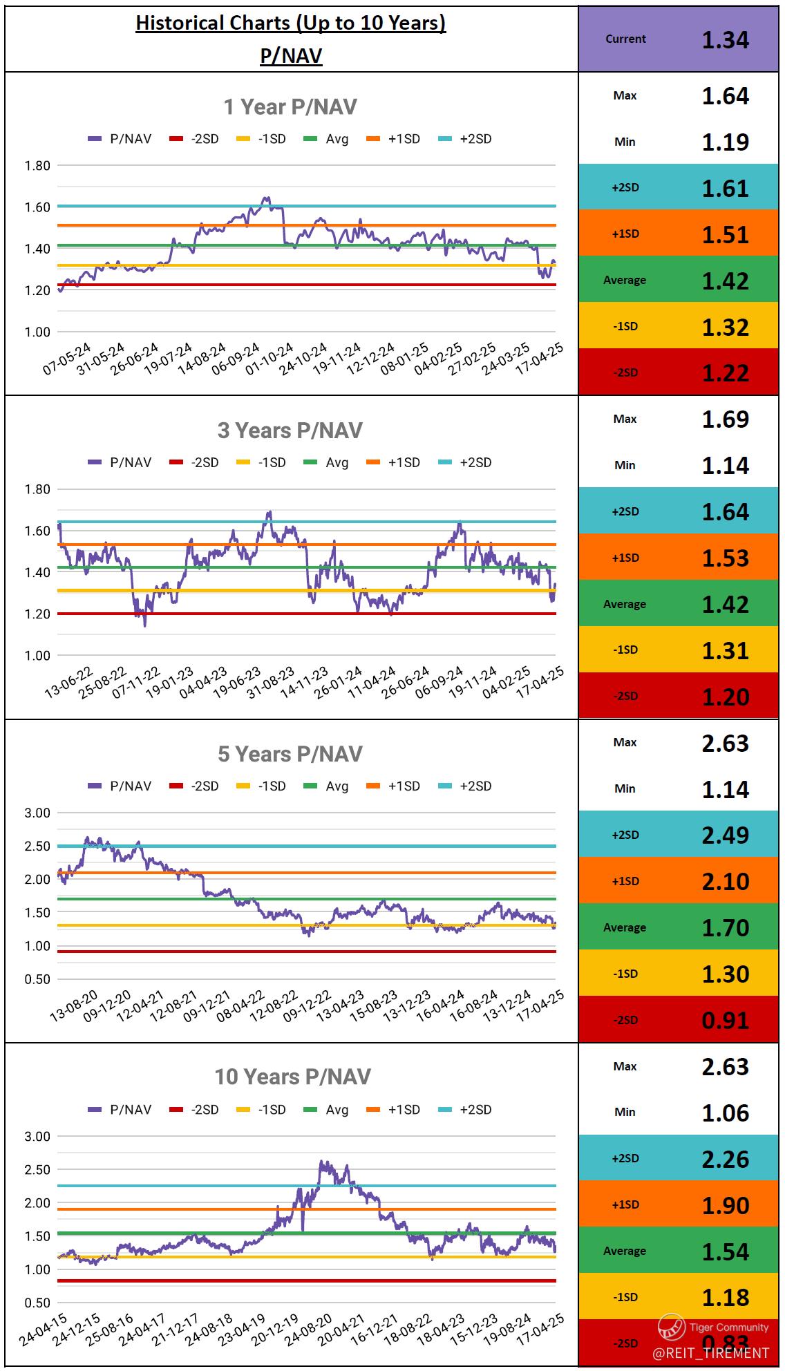 P/NAV: Average for 1y, 3y, 5y & 10y