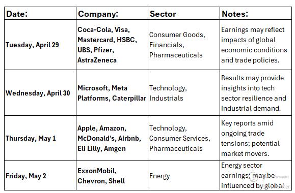 Big Tech Earnings (All Week): Microsoft, Meta, Apple, and Amazon report — tech sector performance could strongly influence the S&P 500 and Nasdaq.