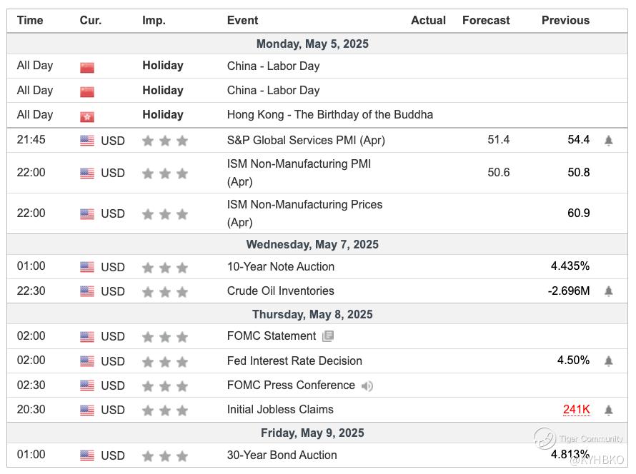 ISM Non-Manufacturing Prices (Apr) (22:00, USD, Forecast: 60.9): A high reading of 60.9 suggests rising prices in the non-manufacturing sector, which may fuel inflation concerns and influence expectations for Federal Reserve policy.