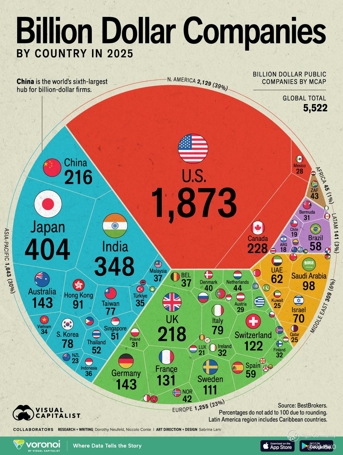 US has 39% of the Billion Dollar companies and attracted 70% of global funds.