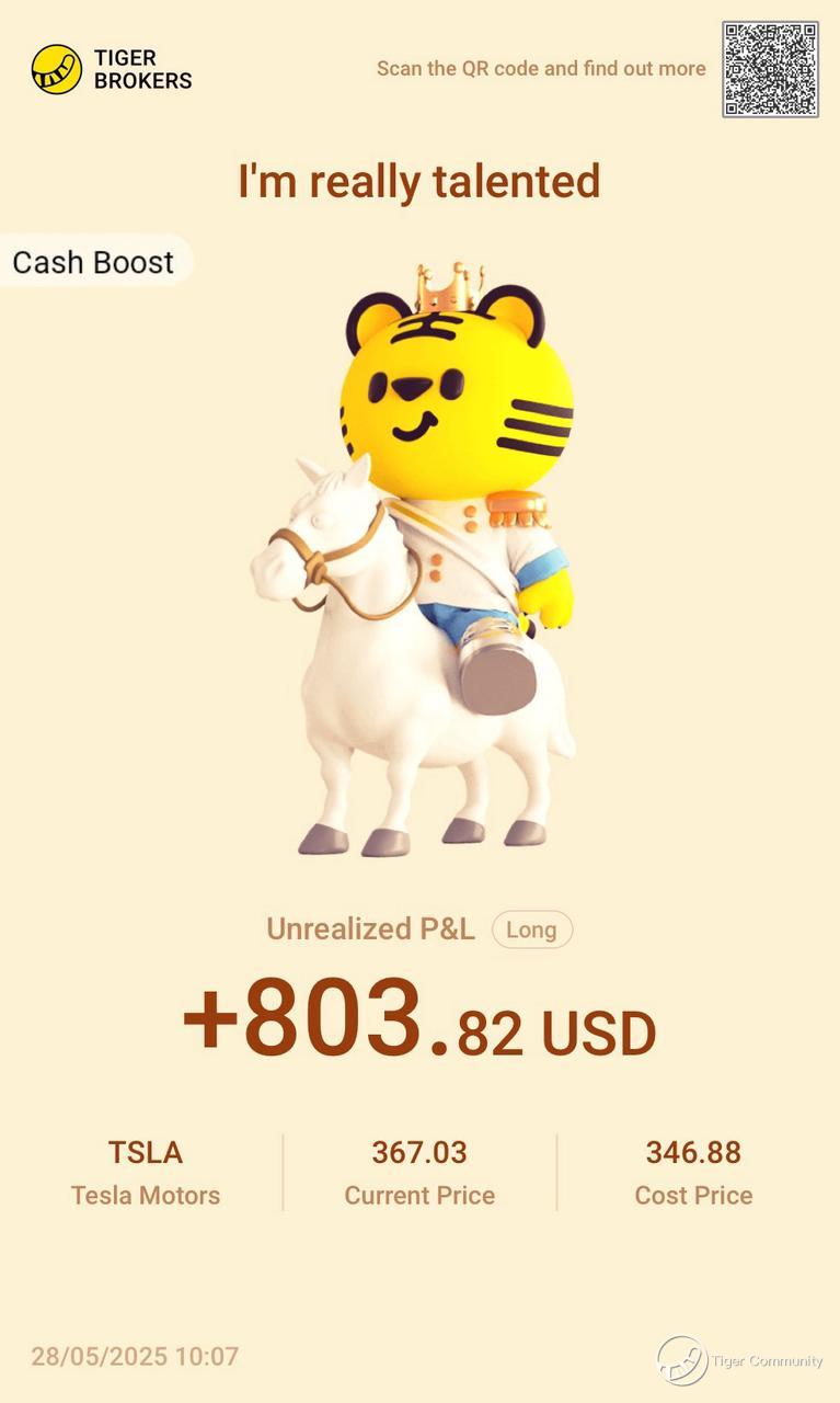 $Tesla Motors(TSLA)$ finally showing signs of life,glad I stayed in early haha. Musk is back in full grind mode, going 24/7 and even planning to sleep in the factory again. That’s peak Musk. The real story isn’t just EV sales, it’s about the breakthroughs in autonomous driving and robotics. As he’s said all along,Tesla isn’t just a car company, it’s a tech company. While traditional automakers may hit a ceiling, Tesla’s upside is virtually limitless. So when others doubt, I just hold or buy more. In Musk we trust.