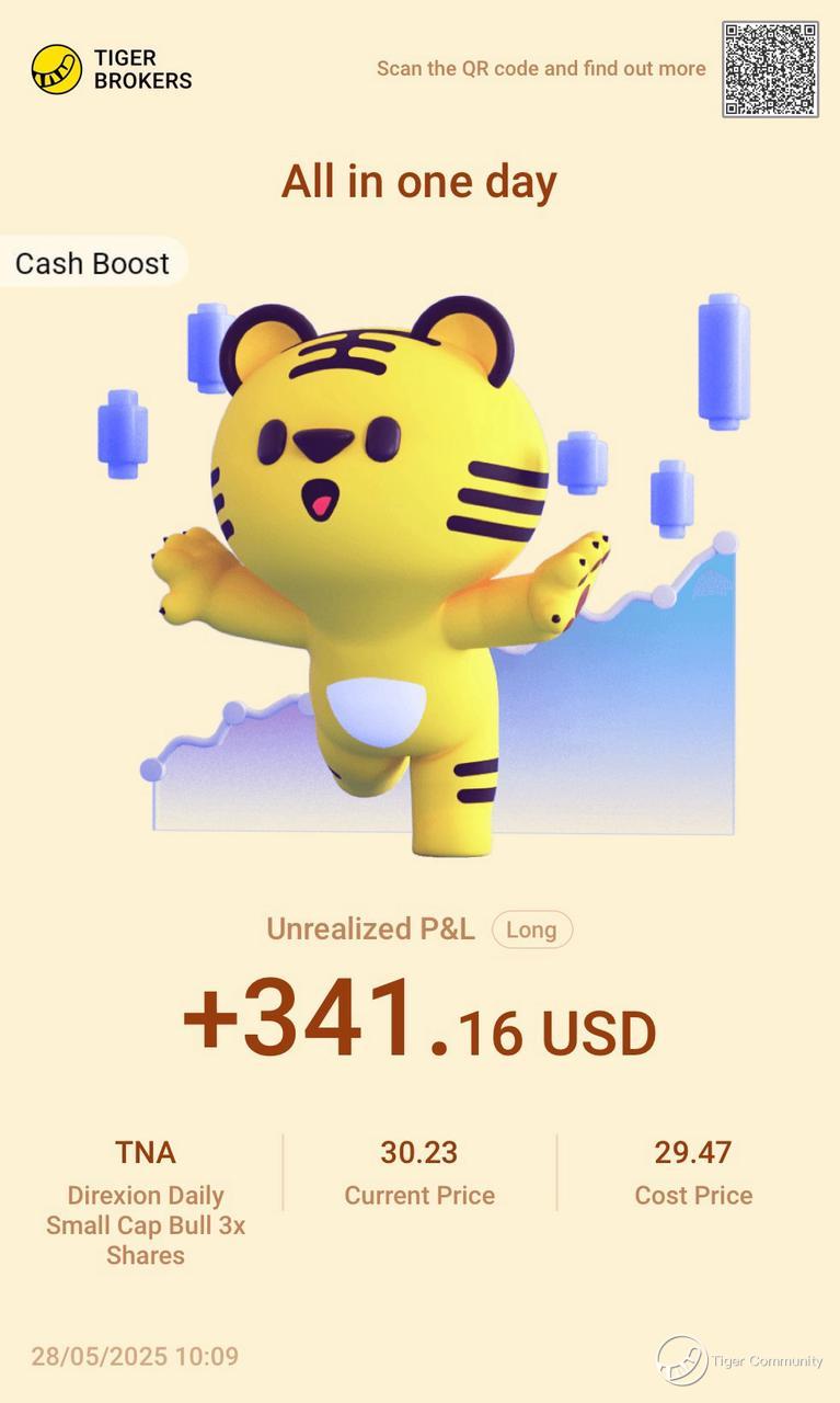 $Direxion Daily Small Cap Bull 3x Shares(TNA)$ The interest rate is going to be cut, and it has risen well today