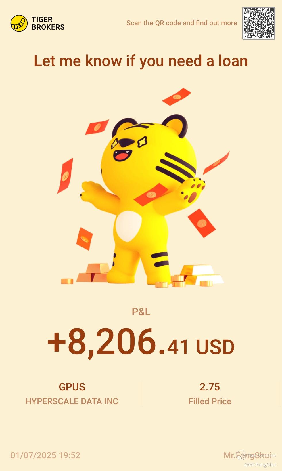 $HYPERSCALE DATA INC(GPUS)$ bought at 1.89. Close to 50% gained. Small investment small return ~