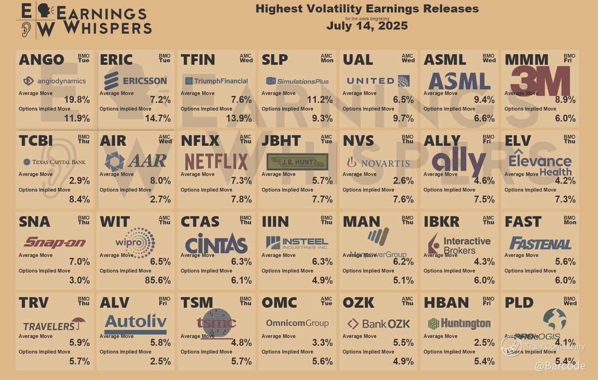 Earnings drop Wednesday, 17Jul25 BMO, in a week that could reshape tech sentiment. CPI hits Tuesday, PPI lands Wednesday, the Fed enters blackout Friday, and $NFLX and $TSMC headline earnings. I’m not chasing AI fluff, I’m positioning upstream.