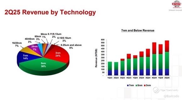 This mix is where the money and margins are. 3nm saw strong demand from AI server chips, and management confirmed tight capacity. That gap between supply and demand is narrowing fast, and as they ramp N2 in 2H25, that should support continued pricing strength at the premium nodes.