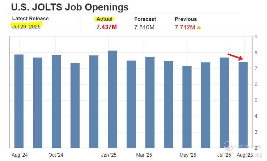 Latest data from US Bureau of Labour Statistics (BLS) revealed a decrease in JOLTs job openings, a key indicator of job vacancies in June 2025.