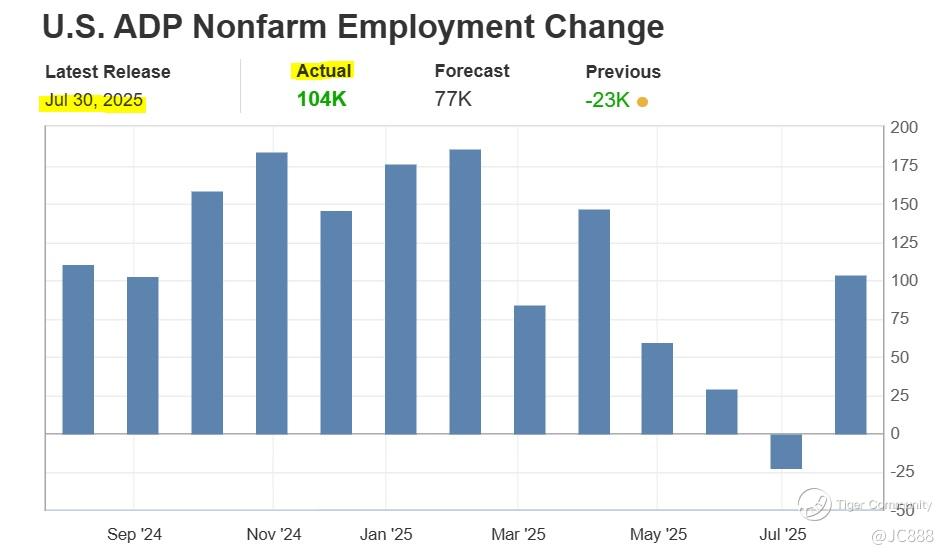 ADP National Employment Report for July 2025, showed that US private payrolls increased more than expected, in the face of slowing US labour market.